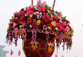 慶祝國慶節(jié)彩繪仿真大花籃雕塑