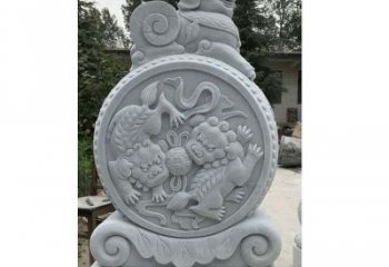 古典精美大理石浮雕鯉魚吉祥圓形抱鼓石