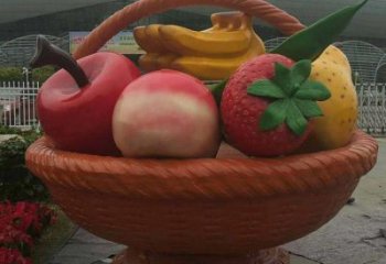 大型玻璃鋼彩繪水果雕塑果籃