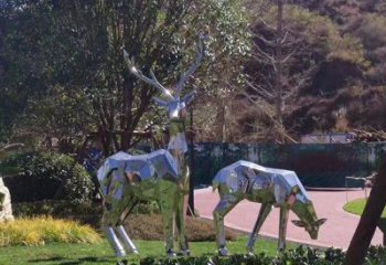 不銹鋼幾何雕塑——梅花鹿,點(diǎn)綴戶外公園