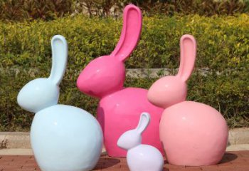 彩繪大型玻璃鋼戶外幾何兔子雕塑
