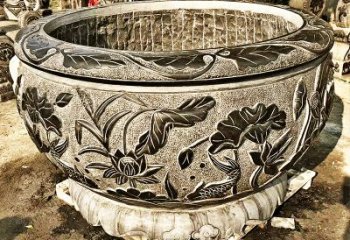 晚霞紅蓮花石雕魚缸雕塑